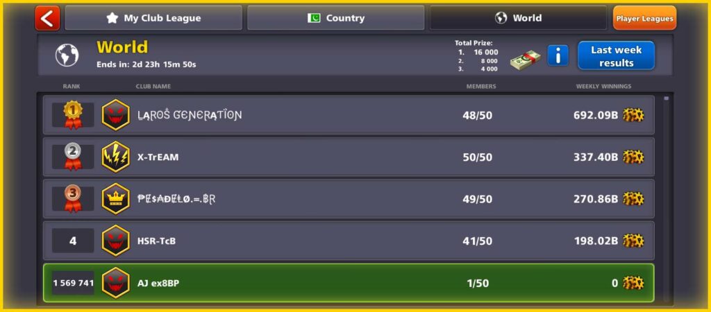 - World Club Rewards: 16,000, 8,000, 4,000 Cash (Top 3 Clubs)
